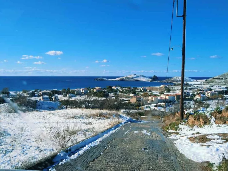 Το χιόνι κάλυψε στέγες, δρόμους και παραθαλάσσιες γειτονιές, δημιουργώντας εικόνες που δεν είναι συχνές για τη Λήμνο και προκάλεσαν το ενδιαφέρον κατοίκων και επισκεπτών.