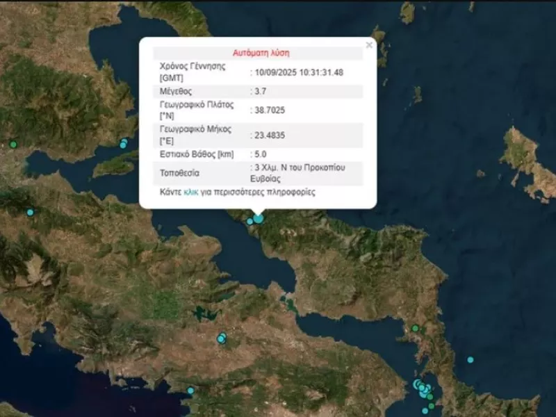 Σεισμική δόνηση μεγέθους 3,7 βαθμών της κλίμακας Ρίχτερ σημειώθηκε στις 13.30 στην Εύβοια, μετά τα 5,3 Ρίχτερ στα Νέα Στύρα, που ταρακούνησαν και την Αθήνα τη νύχτα της Τρίτης.