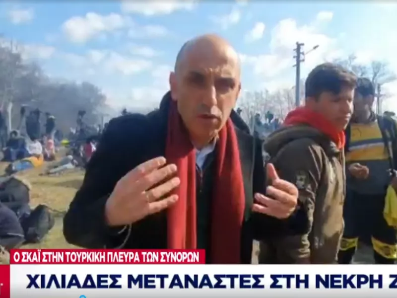 Ο Μανώλης Κωστίδης με την κάμερα του Σκαϊ από το σημείο μηδέν στην Τουρκική πλευρά καταγράφει τις σκηνές που διαδραματίζονται στις δύο πλευρές των συνόρων.