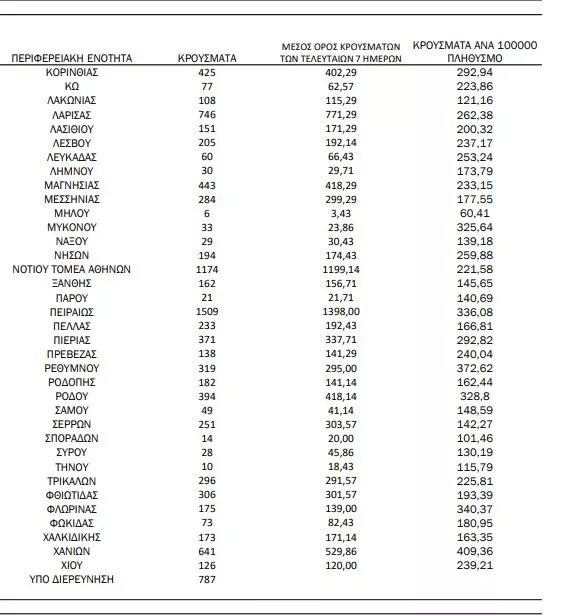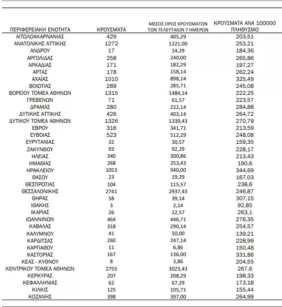 Αναλυτικότερα τα κρούσματα στις περιφερειακές ενότητες που ανήκουν στην Αττική: