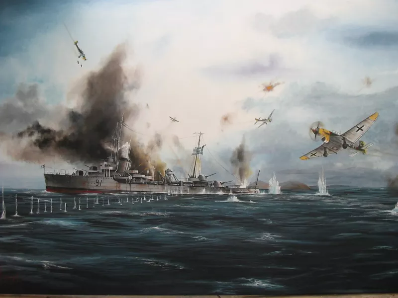Το απόγευμα της 22ας Απριλίου του 1941, ενώ το αντιτορπιλικό βρισκόταν κοντά στη νησίδα Λαγούσα ένα σμήνος από γερμανικά αεροσκάφη ξεπρόβαλε απειλητικά στον ορίζοντα. Η ξαφνική επίθεση ήταν αφάνταστα τρομακτική.
