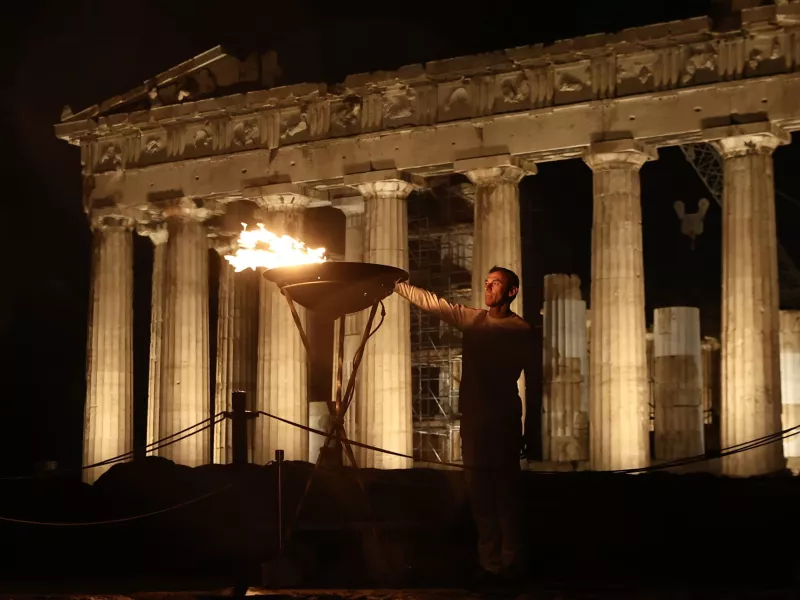 Τη νύχτα της Παρασκευής, τη φλόγα στο βωμό της Ακρόπολης άναψε ο Ολυμπιονίκης Περικλής Ιακωβάκης, έχοντας παραλάβει το Φως από τον πρωταθλητή της κολύμβησης Ανδρέα Βαζαίο.