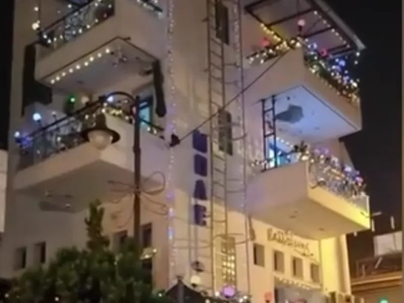 Μια πολυκατοικία στις Συκιές Θεσσαλονίκης αποφάσισε να ανάψει τα χριστουγεννιάτικα λαμπάκια με τα οποία έχει στολίσει όλα τα μπαλκόνια, ξεκινώντας την αντίστροφη μέτρηση για την εορταστική περίοδο.