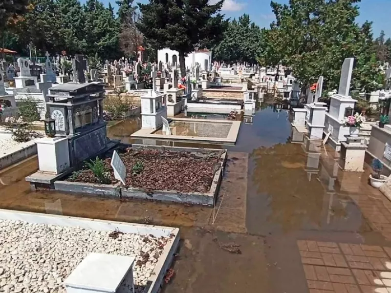 Η κακοκαιρία και η σφοδρή νεροποντή δεν άφησαν αλώβητα και τα Κοιμητήρια Αγίας Τριάδος και Αγίου Στεφάνου Πτολεμαΐδας, όπου τεράστιες ποσότητες νερού κάλυψαν τους τάφους, αλλά και όλους τους διαδρόμους του τεράστιου χώρου. Καμία προσβασιμότητα δεν υπάρχει ώστε να μπορούν να πλησιάσουν τους τάφους των κεκοιμημένων οι οικείοι τους.