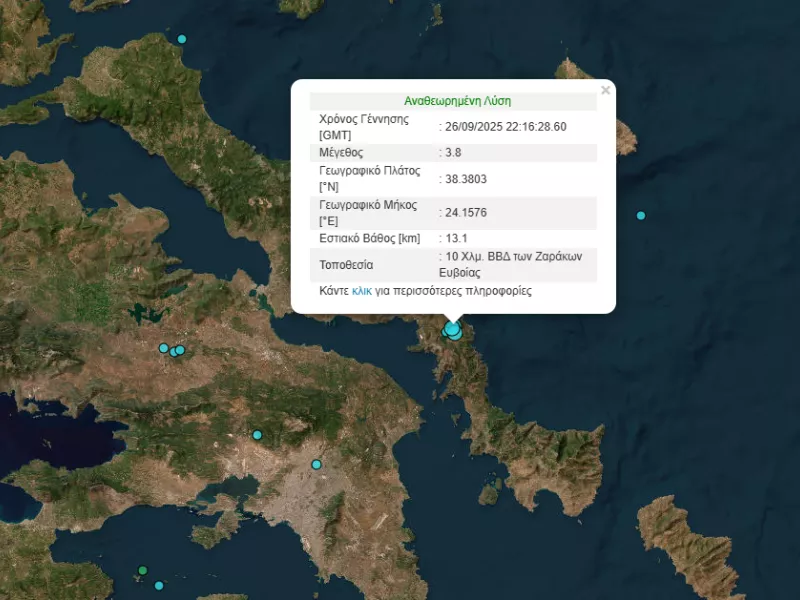 Ο σεισμός έγινε αισθητός στην Εύβοια και σε περιοχές της Αττικής. Μέχρι στιγμής δεν έχουν αναφερθεί ζημιές.