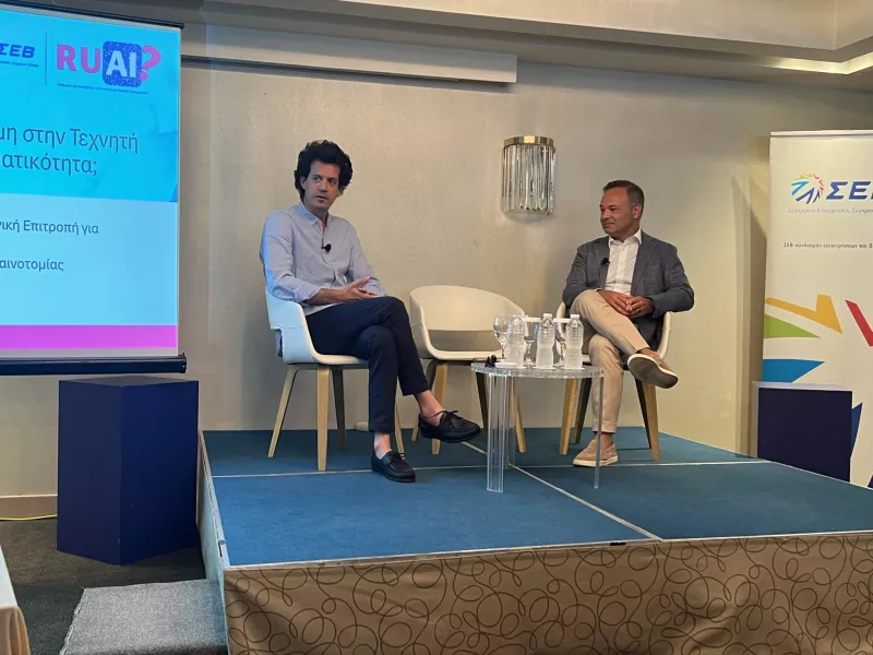 Τα ζητήματα αυτά, και πολλά ακόμα, συζητήθηκαν κατά τη διάρκεια της ανοιχτής εκδήλωσης, με τίτλο «Άνθρωποι και Επιχειρήσεις την εποχή της Τεχνητής Νοημοσύνης», που διοργάνωσε ο ΣΕΒ, στο πλαίσιο της πρωτοβουλίας του «R U AI?», με προσκεκλημένο τον Δρ. Κωνσταντίνο Δασκαλάκη, Πρόεδρο της Εθνικής Επιτροπής για την Τεχνητή Νοημοσύνη, και διακεκριμένους επιστήμονες και στελέχη της αγοράς, τη Δευτέρα 3 Ιουνίου.