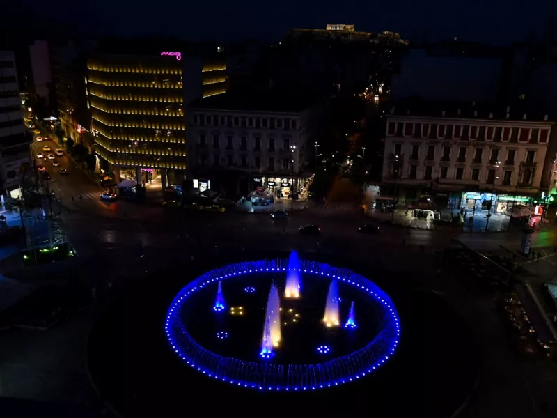 Στα χρώματα της Ουκρανίας φωταγωγήθηκε το βράδυ της Τετάρτης 24 Αυγούστου, το σιντριβάνι της Ομόνοιας, αποτίοντας η Αθήνα φόρο τιμής στην Ημέρα Ανεξαρτησίας της χώρας.