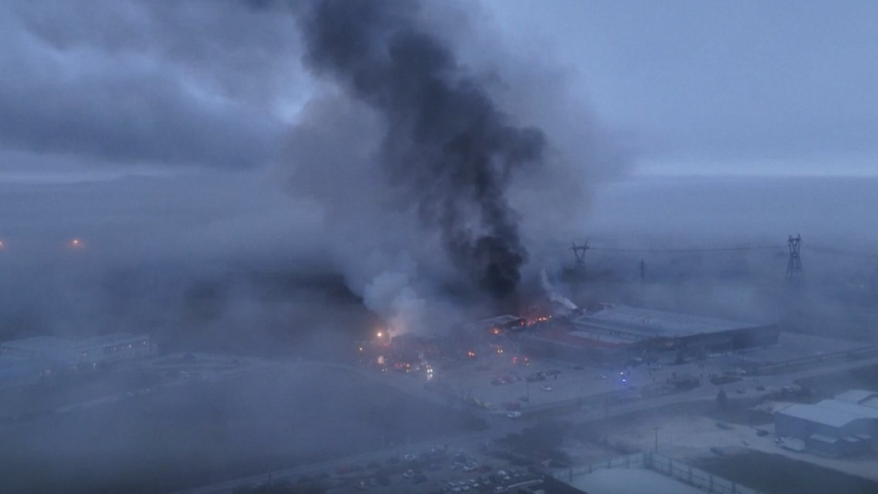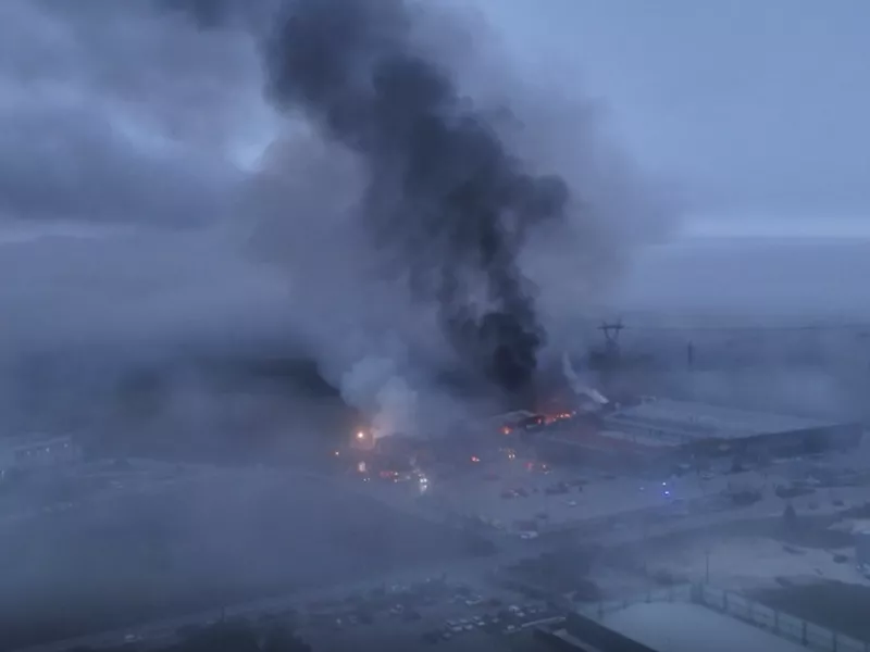 Στις εικόνες φαίνεται πυκνοί καπνοί να έχουν καλύψει τον ουρανό με πτέρυγα του εργοστασίου να έχει καεί ολοσχερώς.