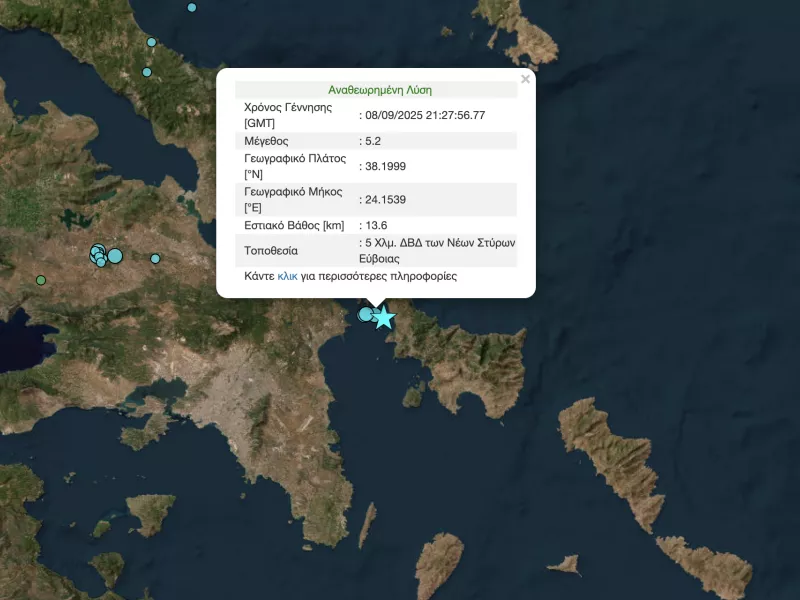 Από περιοχή που δεν χαρακτηρίζεται από υψηλή σεισμικότητα προέρχεται η σεισμική δόνηση των 5,2 Ρίχτερ που σημειώθηκε σήμερα λίγο πριν από τις 00.30 στον θαλάσσιο χώρο μεταξύ Αττικής και Εύβοιας, κοντά στα Στύρα Ευβοίας, δήλωσε στο ΑΠΕ-ΜΠΕ ο πρόεδρος του ΟΑΣΠ, Καθηγητής Διαχείρισης Φυσικών Καταστροφών, Ευθύμης Λέκκας.