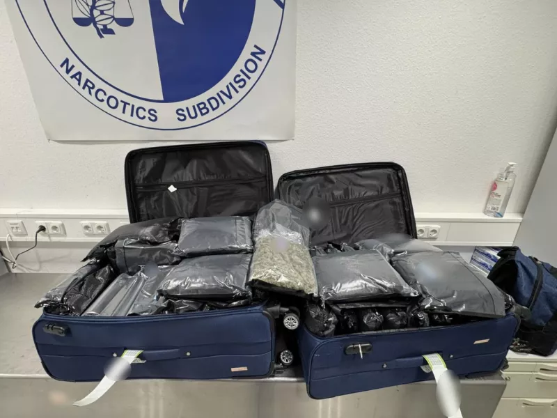 Από τον έλεγχο που πραγματοποιήθηκε στις αποσκευές τους, συνολικά κατελήφθησαν να έχουν αποκρύψει σε νάιλον συσκευασίες εντός των αποσκευών τους, 72 κιλά και 700 γραμμάρια ακατέργαστης κάνναβης υδροπονικής καλλιέργειας (skunk).