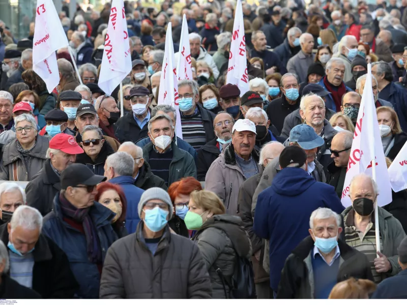 Απαιτώντας πραγματικές αυξήσεις για την αντιμετώπιση της ακρίβειας, οι Συνεργαζόμενες Συνταξιουχικές Οργανώσεις πραγματοποίησαν το πρωί της Τετάρτης πανελλαδική συγκέντρωση στην πλατεία Κοτζιά και πορεία προς το υπουργείο Εργασίας.