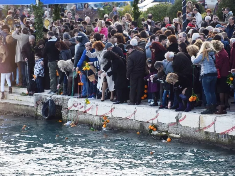 Τα Θεοφάνια του επόμενου έτους, ρίχνουν τα πορτοκάλια που είχαν φυλάξει στη θάλασσα και βουτάνε τα φρέσκα.