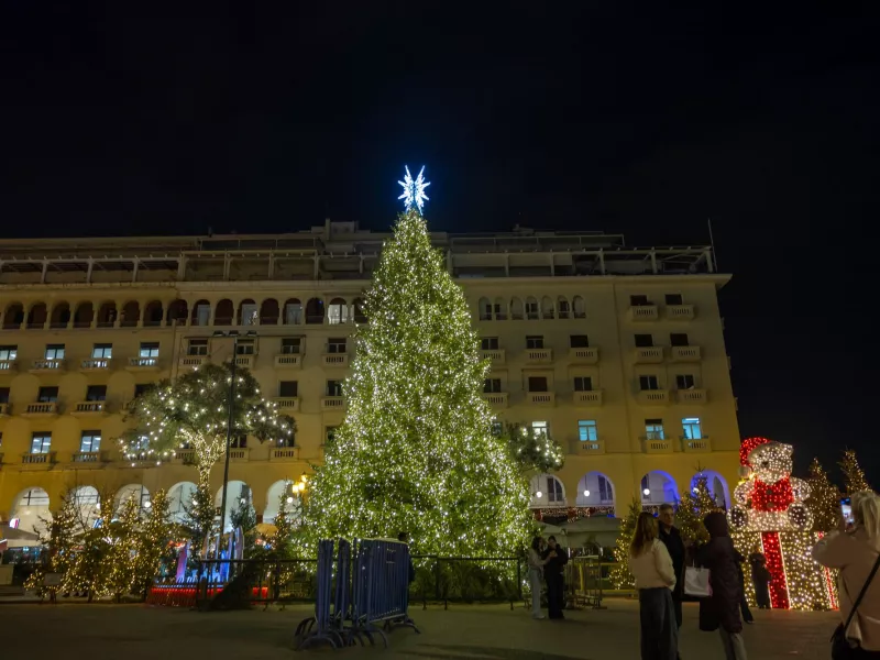 Σε εορταστικούς ρυθμούς και επίσημα μπαίνει η Θεσσαλονίκη, καθώς απόψε, στις 20:00, ανάβει το χριστουγεννιάτικο δέντρο, ύψους 18 μέτρων, στην πλατεία Αριστοτέλους.
