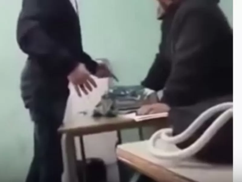 Στο βίντεο ο μαθητής ωρύεται και με πολύ επιθετικό και βίαιο τρόπο, απειλεί την καθηγήτρια, προκειμένου εκείνη να του σβήσει μία απουσία.