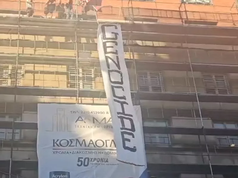 Ένταση σημειώθηκε το απόγευμα της Τετάρτης στη Θεσσαλονίκη, όταν μέλη της αναρχικής συλλογικότητας «Ρουβίκωνας» σκαρφάλωσαν στη σκαλωσιά που έχει αναπτυχθεί στο Εμπορικό Κέντρο «Πλατεία» και έφτασαν μέχρι τον όροφο όπου στεγάζεται το Προξενείο των ΗΠΑ.