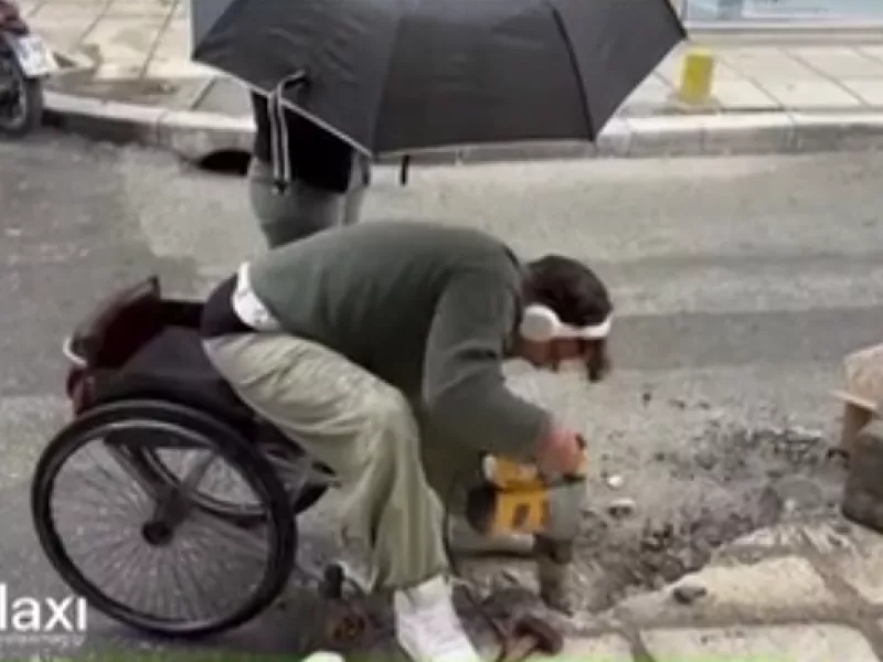 Στο κέντρο της Θεσσαλονίκης, ανήμερα της Παγκόσμιας Ημέρας Αναπηρίας, ο Κωνσταντίνος Τσιφτσόπουλος, νεαρός ΑμεΑ που μετακινείται με αναπηρικό αμαξίδιο, αποφάσισε να δημιουργήσει μόνος του μια ράμπα διέλευσης στη διασταύρωση των οδών Βενιζέλου και Παπαδοπούλου.