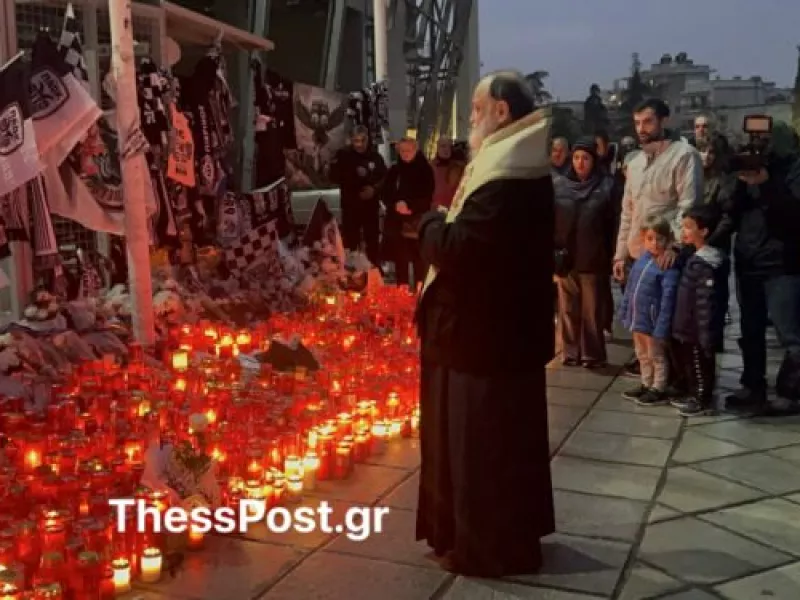 Πριν από λίγο, ο Αρχιεπίσκοπος Λύδδης Δημήτριος βρέθηκε στο άτυπο μνημείο για τους νεαρούς φίλαθλους και τέλεσε επιμνημόσυνη δέηση.