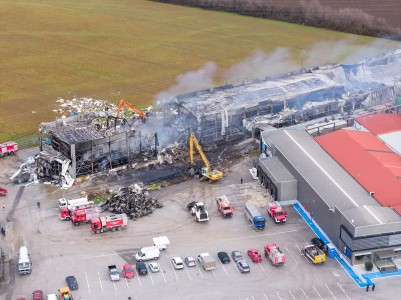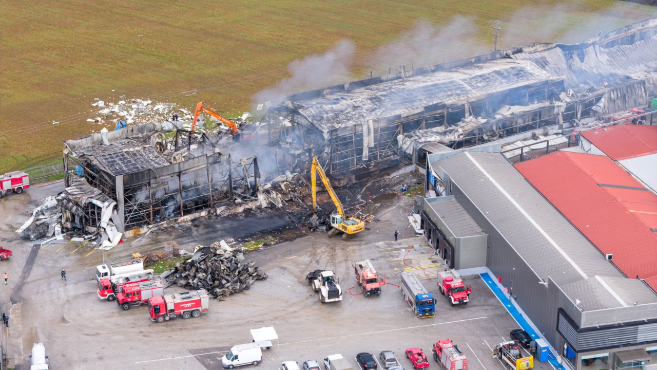 Στις εικόνες που μετέδωσε ο ΣΚΑΪ φαίνεται πως καπνοί συνεχίζουν να βγαίνουν και σήμερα από το εργοστάσιο. Η Πυροσβεστική παραμένει στο σημείο και από το πρωί βαριά μηχανήματα απομακρύνουν τα συντρίμμια από την πτέρυγα του εργοστασίου που έγινε στάχτη.