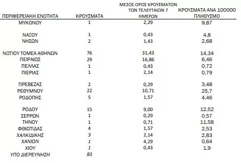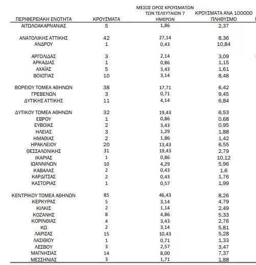 Αναλυτικότερα τα κρούσματα στις περιφερειακές ενότητες που ανήκουν στην Αττική: