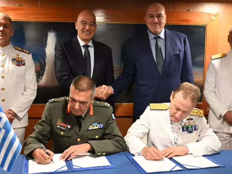 Παρουσία των δύο Υπουργών, υπογράφηκε από τον Γενικό Διευθυντή Αμυντικών Εξοπλισμών και Επενδύσεων (ΓΔΑΕΕ) Υποστράτηγο Ιωάννη Μπούρα και τον Ιταλό ομόλογό του Διευθυντή Εθνικών Εξοπλισμών της Ιταλίας Αντιναύαρχο Ottaviani Giancinto, Μνημόνιο Συνεργασίας για τη Ναυτική Συνεργασία Ελλάδας - Ιταλίας και Δήλωση Προθέσεων για την απόκτηση 2+2 ιταλικών φρεγατών τύπου FREMM, κλάσης Bergamini.