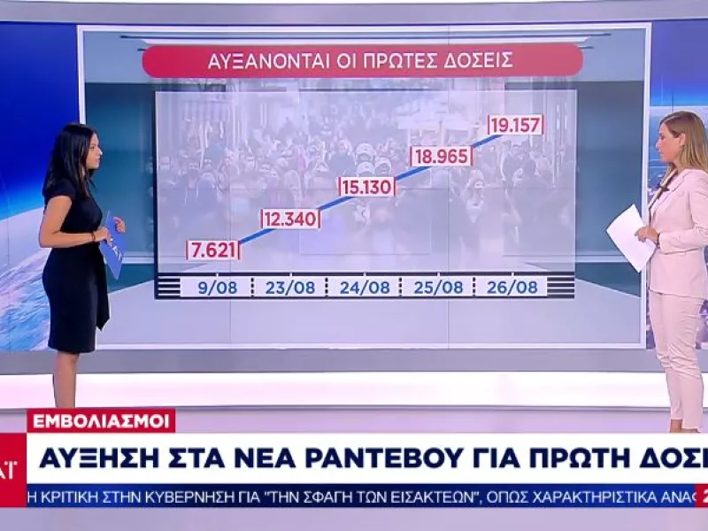 Το ζητούμενο είναι η αύξηση των εμβολιασμών η οποία διαπιστώνεται καθώς στις 9 Αυγούστου καταγράφονται 7.621 πρώτες δόσεις ενώ στις 26 του μήνα έγιναν συνολικα 19.157.