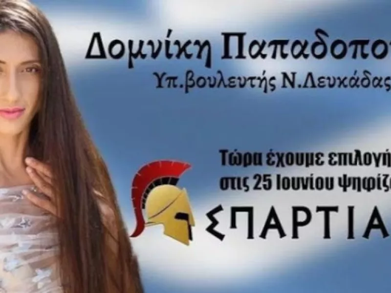 «Στο θέμα της υποψηφίου των Σπαρτιατών στη Λευκάδα, κυρίας Δομινίκης Παπαδοπούλου, δηλώνω δυσαρέσκεια για το πρόσφατο συμβάν σε σχέση με την προβολή της στάσης ζωής της. Δεν συνάδει με τις ηθικές αξίες της παράταξής μας. Τυπικά δεν μπορώ να αλλάξω κάτι. Δεν επιθυμώ την περαιτέρω συνεργασία μαζί της. Ο πρόεδρος Βασίλης Στίγκας».