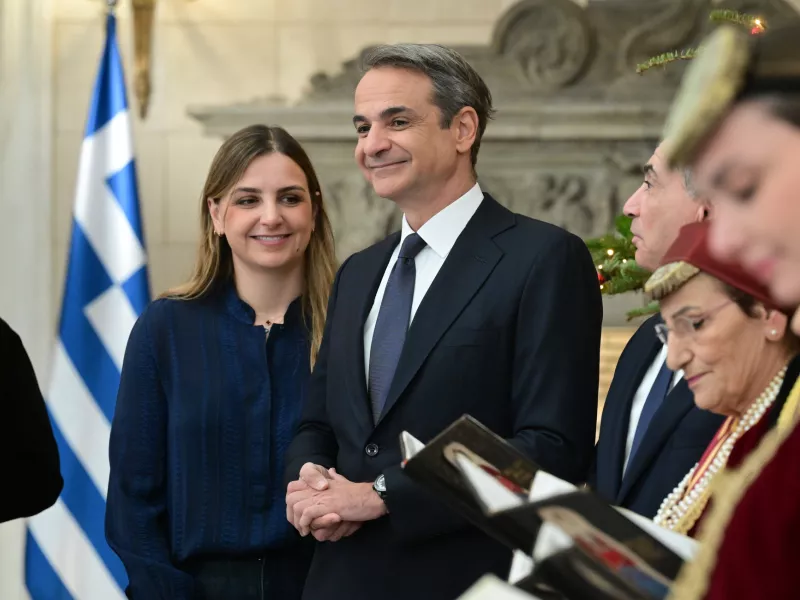 Κάλαντα της Πρωτοχρονιάς άκουσαν στο Μέγαρο Μαξίμου ο πρωθυπουργός Κυριάκος Μητσοτάκης και η κόρη του Σοφία.