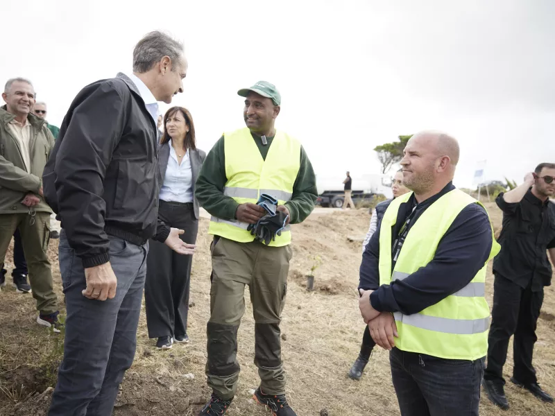 Ο πρωθυπουργός ενημερώθηκε από τον Γενικό Διευθυντή Δασών και Δασικού Περιβάλλοντος του υπουργείου Περιβάλλοντος και Ενέργειας Ευάγγελο Γκουντούφα για την πορεία των εργασιών φύτευσης συνολικά 990.000 δενδρυλλίων στην περιοχή της Νέας Πεντέλης προκειμένου να υποστηριχθεί η διαδικασία φυσικής αναδάσωσης, ενώ είχε την ευκαιρία να συνομιλήσει με τους εργαζόμενους στο συνεργείο αναδάσωσης και κατοίκους της περιοχής. Οι εργασίες χρηματοδοτούνται από πόρους του Ταμείου Ανάκαμψης με χρονοδιάγραμμα ολοκλήρωσης τον Ιούνιο 2026.