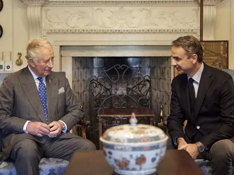 Η "ολιστική στρατηγική" που έχει εφαρμόσει το Ίδρυμα του Πρίγκιπα Καρόλου για την αποκατάσταση της έπαυλης Dumfries και του κτήματος που την περιβάλλει, με στόχο να αναδειχθεί αναλόγως και το κτήμα Τατοΐου, ήταν το βασικό αντικείμενο της συνάντησης σήμερα το απόγευμα του πρωθυπουργού Κυριάκου Μητσοτάκη με τον Πρίγκιπα της Ουαλίας Κάρολο στην έπαυλη Dumfries House, στη Σκωτία.