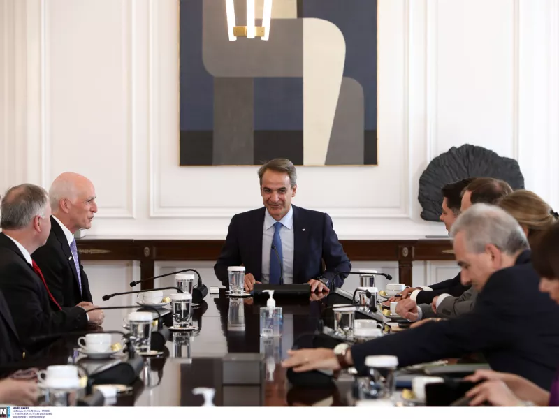 Συνάντηση με διακομματική αντιπροσωπεία της Βουλής των Αντιπροσώπων των Ηνωμένων Πολιτειών, με επικεφαλής τον Πρόεδρο της Επιτροπής Στρατιωτικών Υποθέσεων, Άνταμ Σμιθ, είχε σήμερα, Τρίτη, ο πρωθυπουργός Κυριάκος Μητσοτάκης, παρουσία του Πρέσβη των ΗΠΑ, Τζορζ Τσούνης.