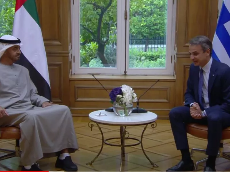«Είναι ευχαρίστησή μου που σας υποδέχομαι στην Αθήνα» τόνισε ο πρωθυπουργός Κυριάκος Μητσοτάκης στο διάλογο που είχε με τον πρόεδρο των Ηνωμένων Αραβικών Εμιράτων Σεϊχη Mohamed bin Zayed Al Nahyan κατά τη συνάντησή τους στο Μέγαρο Μαξίμου.