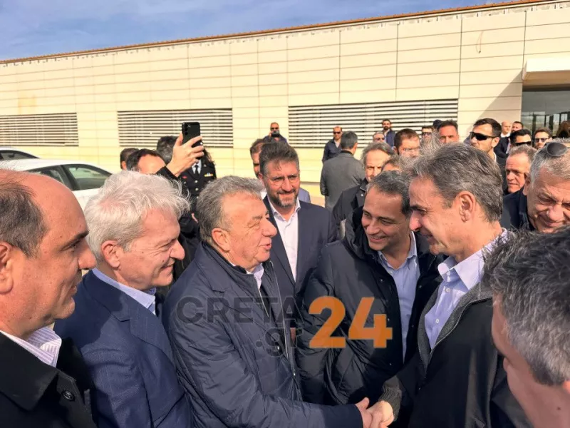 Στο εργοτάξιο του νέου αεροδρομίου στο Καστέλι έφτασε λίγο μετά τις 11 το πρωί ο πρωθυπουργός Κυριάκος Μητσοτάκης.