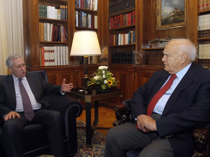 Σύγκληση συμβουλίου πολιτικών αρχηγών για να υπάρξει συνεννόηση σχετικά με την αναδιάρθρωση του χρέους ζήτησε από τον Πρόεδρο της Δημοκρατίας ο πρόεδρος της ΔΗΜΑΡ Φώτης Κουβέλης ο οποίος έγινε δεκτός από τον Κάρολο Παπούλια στο Προεδρικό Μέγαρο.