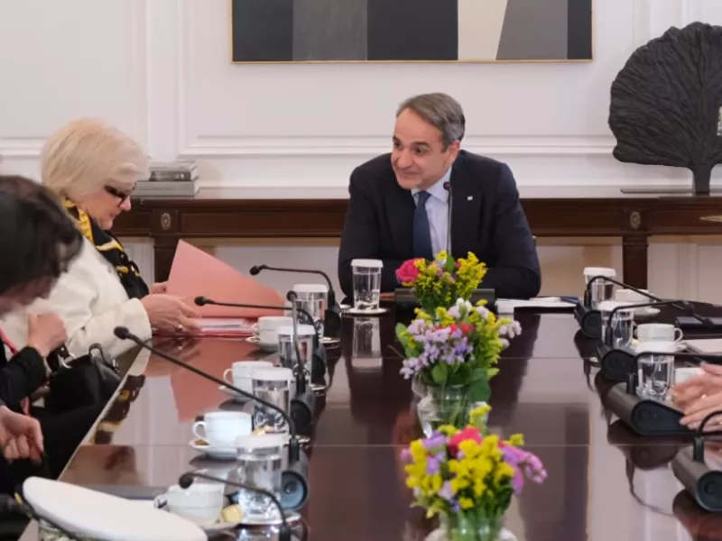 O Πρωθυπουργός Κυριάκος Μητσοτάκης συναντήθηκε στο Μέγαρο Μαξίμου με την Υπουργό Ενόπλων Δυνάμεων της Γαλλίας Catherine Vautrin.
