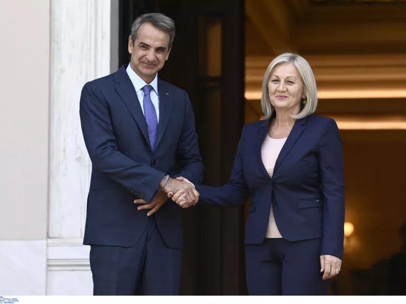 Οι διμερείς σχέσεις και η υποστήριξη της Ελλάδας στα επόμενα βήματα της Βοσνίας και Ερζεγοβίνης προς την ευρωπαϊκή της προοπτική συζητήθηκαν στη διάρκεια συάντησης του πρωθυπουργού Κυριάκου Μητσοτάκη με την Πρόεδρο του Υπουργικού Συμβουλίου της Βοσνίας και Ερζεγοβίνης, Borjana Krišto.