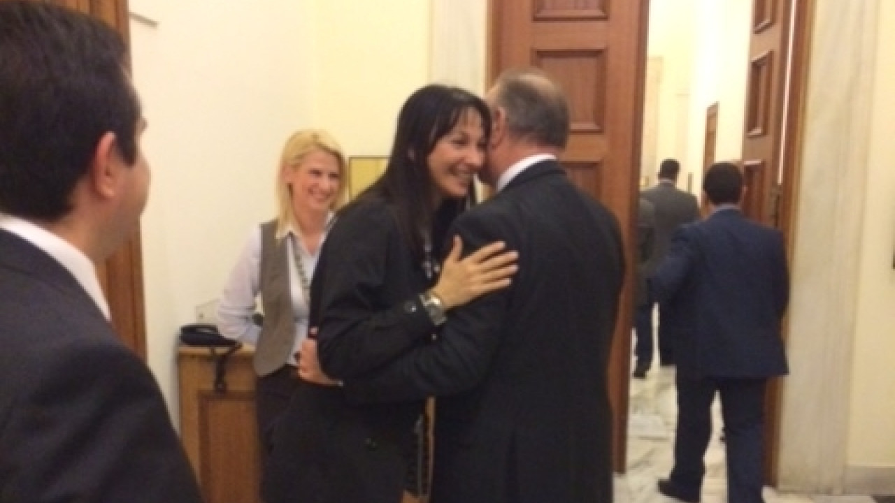 Βουλή: Θερμή χειραψία Κουντουρά με τον Σαμαρά και εναγκαλισμός με Σταμάτη