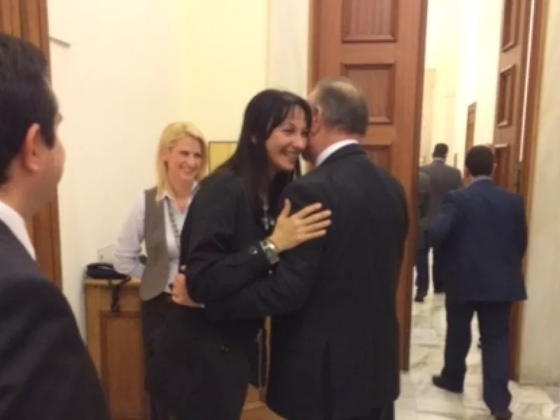 Η κ. Κουντουρά στη συνέχεια είχε και θερμό εναγκαλισμό με τον υπουργό Επικρατείας Δημήτρη Σταμάτη, με την επίμαχη φωτογραφία να κάνει το γύρο του διαδικτύου. «Έλα εδώ να σε φιλήσω εσένα» τής ανέφερε χαρακτηριστικά ο υπουργός Επικρατείας.