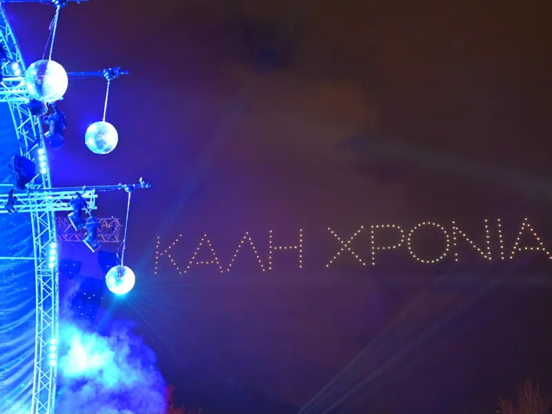 Μόλις οι δείκτες των ρολογιών έδειξαν ακριβώς μεσάνυχτα, ο αττικός ουρανός φωτίστηκε από πυροτεχνήματα αλλά και από ένα φαντασμαγορικό drone show που εντυπωσίασε το κοινό. Δεκάδες μικρά drones σχημάτισαν στον νυχτερινό καμβά παραδοσιακά χριστουγεννιάτικα σύμβολα, μηνύματα χαράς και γιορτινά σχέδια, αφήνοντας το κοινό με το στόμα ανοιχτό, ενώ οι κάμερες των κινητών τηλεφώνων που απαθανάτιζαν τις στιγμές, γέμισαν με εικόνες μαγείας.