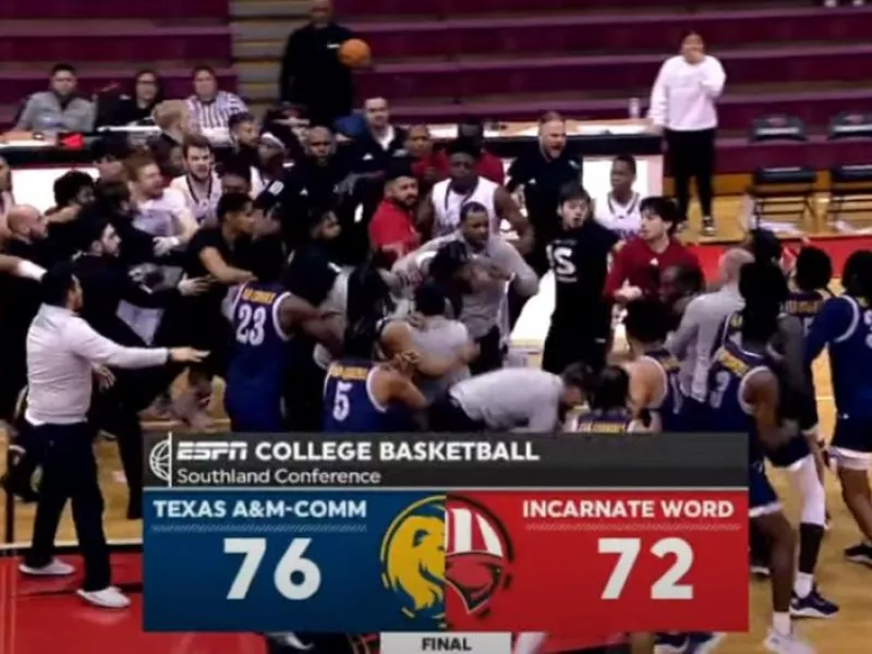 Μερικές στιγμές μετά τη λήξη της αναμέτρησης της ομάδας του Incarnate Word με εκείνη του TX A&M Commerce (οι δεύτεροι επικράτησαν με 76-72 στην παράταση), και ενώ παίκτες και τεχνικά επιτελεία αντάλλασσαν χειραψίες μπροστά από τους δύο πάγκους, ξαφνικά ξέσπασε ένας τεράστιος καυγάς, με μέλη των δύο ομάδων να πιάνονται στα χέρια και με την κατάσταση να ξεφεύγει τελείως.