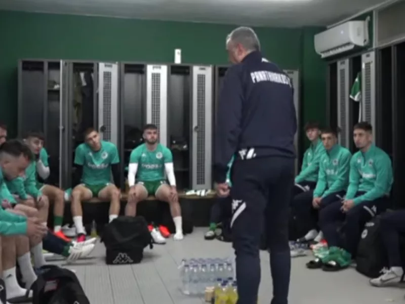 Πριν ξεκινήσει το ματς οι παίκτες και ο προπονητής, Βαγγέλης Σάμιος, μαζεύτηκαν στα αποδυτήρια με τον “πράσινο” προπονητή να θέλει να εμψυχώσει την ομάδα του.
