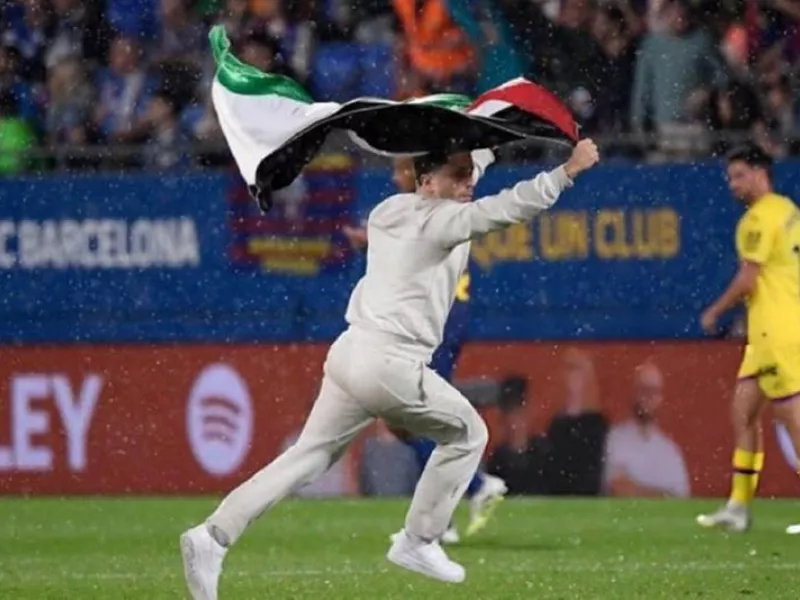 A pitch invader carrying a Palestinian flag briefly interrupted Barcelona’s 3-0 win over Getafe at the Estadi Johan Cruyff stadium on Sunday to raise awareness of the atrocities in Gaza.