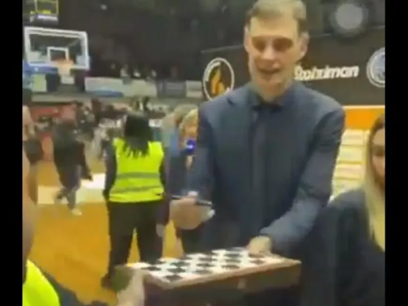 Η αντίδραση του Μπαρτζώκα και το γέλιο που έσκασε μόλις κατάλαβε το έξυπνο λογοπαίγνιο του φίλου της ομάδας ήταν όλα τα... λεφτά, με τον ίδιο εν συνεχεία να υπογράφει με χαρά πάνω στο ταμπλό του σκάκι!