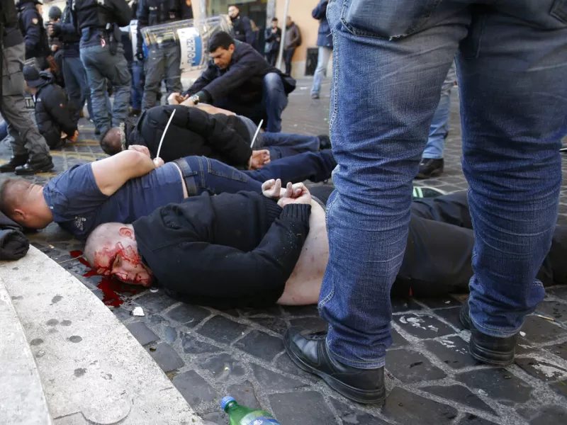 Καρέκλες να εκσφενδονίζονται, μάχες σώμα με σώμα, γκλοπ, μπαστούνια και… ό,τι έβρισκε μπροστά του κάθε οπαδός της Νάπολι και της Σπόρτινγκ για πολεμοφόδιο να χρησιμοποιείται.
