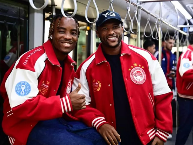 Κατά την αναχώρηση, τα βλέμματα τράβηξαν τα νέα επετειακά τζάκετ που φορούσαν οι παίκτες του Ολυμπιακού, αφιερωμένα στα 100 χρόνια ιστορίας του συλλόγου.
