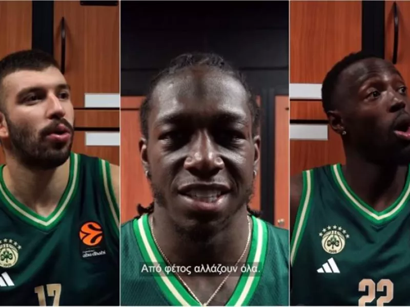 Σε αυτό ο Κέντρικ Ναν προσφέρει μια γρήγορη ματιά στη νέα εμφάνιση, που φαίνεται πως είναι σε πιο σκούρο πράσινο (και με τον χορηγό όχι στην παραδοσιακή κόκκινη απόχρωση), ενώ οι συμπαίκτες του, Τζέριαν Γκραντ, Νίκος Ρογκαβόπουλος και Γιάννης Κουζέλογλου μένουν με το στόμα ανοιχτό.