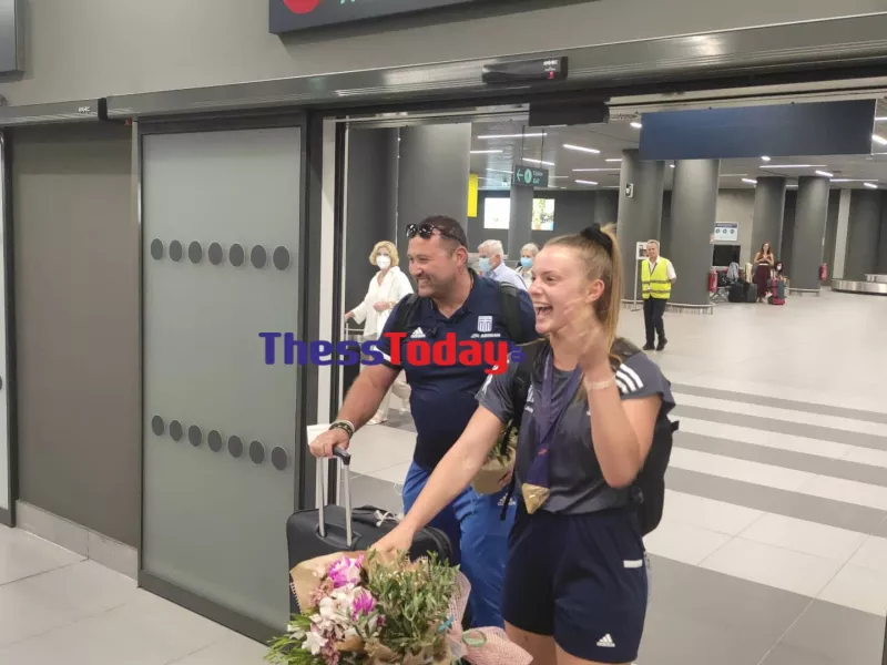Με συνθήματα, αγκαλιές, φιλιά, πυρσούς, σαμπάνιες και το πανηγυρικό «όλε» δεκάδες άτομα υποδέχτηκαν το κορίτσι-θαύμα του ελληνικού αθλητισμού, Ελίνα Τζένγκο και τον προπονητή της, στο αεροδρόμιο «Μακεδονία».