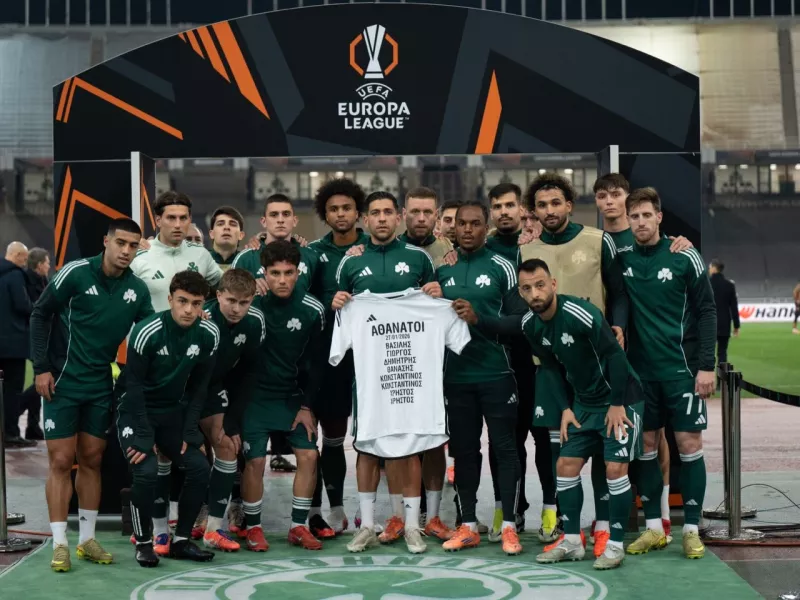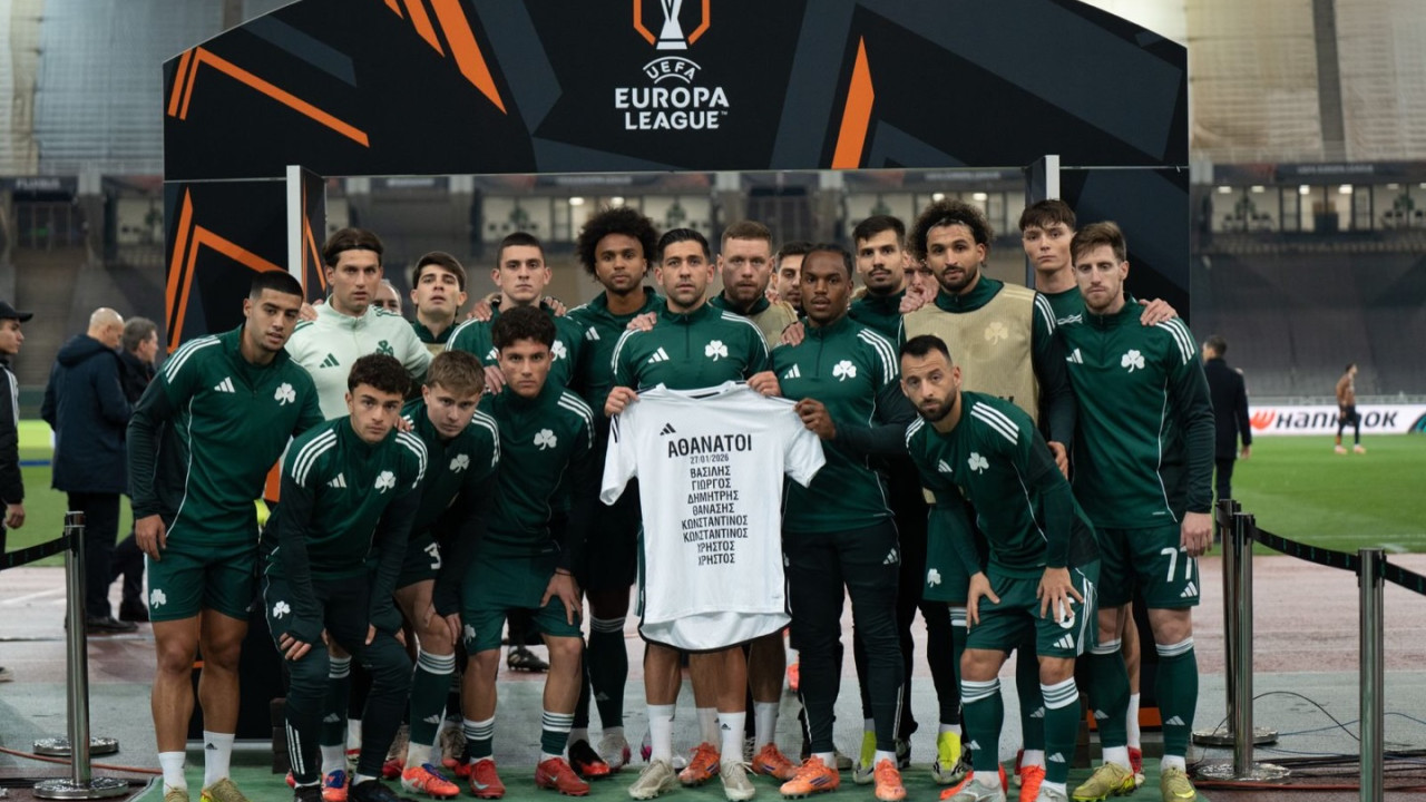 Με τον αρχηγό, Τάσο Μπακασέτα και τον Ρενάτο Σάντσες να κρατούν το μπλουζάκι με τα 8 ονόματα των αδικοχαμένων οπαδών του ΠΑΟΚ και την επιγραφή «Αθάνατοι», οι παίκτες του Παναθηναϊκού απέτισαν φόρο τιμής στη μνήμη των θυμάτων του δυστυχήματος της Ρουμανίας.