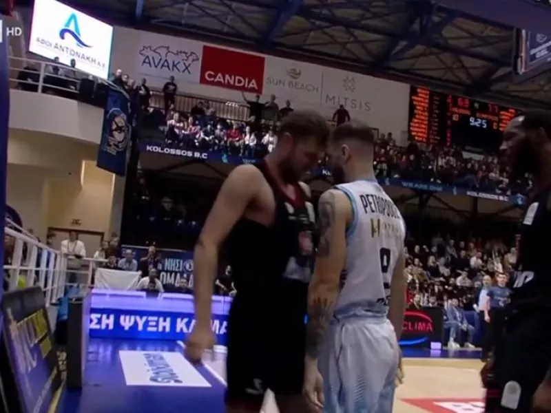 Άναψαν τα αίματα στην αναμέτρηση του Κολοσσού με τον Ολυμπιακό. Λίγο μετά τη λογομαχία που είχαν Άρης Λυκογιάννης και Γιώργος Μπαρτζώκας, με 9:25 να απομένουν και το σκορ 63-77, Ανδρέας Πετρόπουλος και Σάσα Βεζένκοφ είχαν ένα πολύ έντονο επεισόδιο.