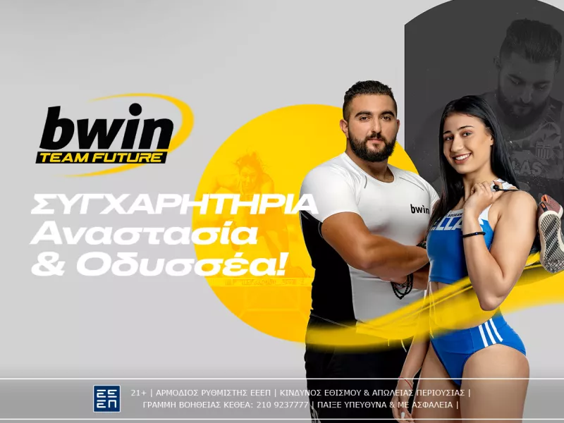 Η bwin μέσω του χορηγικού προγράμματος "Τeam Future" παραμένει στο πλευρό των Οδυσσέα Μουζενίδη, Ελίνας Τζένγκο, Άννας Ντουντουνάκη, Δώρας Γκουντούρα, Απόστολου Παπαστάμου, Αναστασίας Ντραγκομίροβα, Σοφίας Κεσσίδη και Τάσου Λατιφλλάρι. Συνεχίζει να στηρίζει τις προσπάθειες τους και να τους βοηθά να υλοποιήσουν τα όνειρα τους, «αγκαλιάζοντας» έτσι τον ελληνικό αθλητισμό.