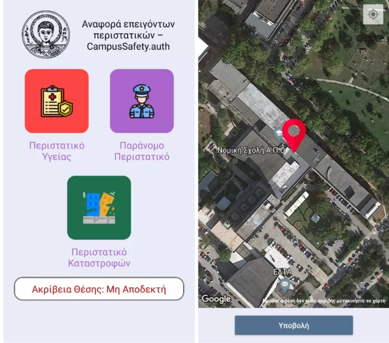 Σε λειτουργία τέθηκε η υπηρεσία «Panic Button» για την αναφορά επειγόντων περιστατικών εντός του campus του Αριστοτελείου Πανεπιστημίου Θεσσαλονίκης (ΑΠΘ). Με την ενεργοποίησή της ήδη περισσότεροι από 500 φοιτητές του ΑΠΘ έχουν εγκαταστήσει στις συσκευές των κινητών τηλεφώνων τους την εφαρμογή «AUTh Campus Safety», που είναι διαθέσιμη μέσω της ψηφιακής πλατφόρμας διανομής εφαρμογών «GooglePlay».